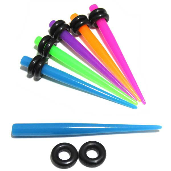 スタンダードなアイテムのため大特価で出品! ピアスホールの拡張の楽しみを是非体験してください! ■スペック■ 【素材】アクリル 【ゲージ/全長】6G(4.0mm) / 約44mm 【カラー】ブルー・グリーン・パープル・オレンジ・ピンク Oリングは2個付属します。
